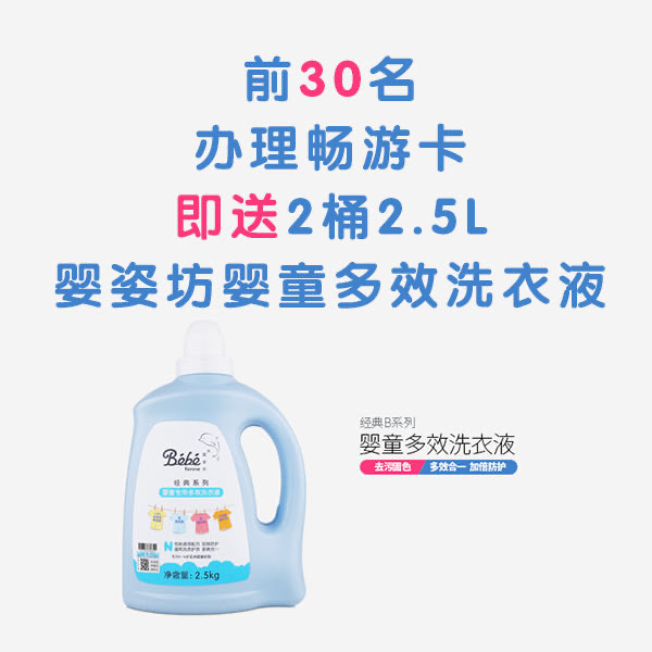 前30名办卡者获赠价值136元2桶2.5L婴姿坊洗衣液