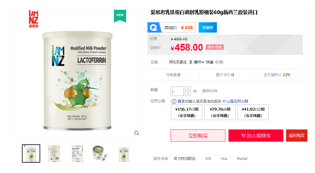 海报爱恩思乳铁蛋白调制乳粉桶装60g新西兰原装进口 原价458元新品上市仅售299元 299.00元立即购买三层防护一次性口罩【民用级】 产品:一次性防护口罩规格:50个/... 150.00元立即购买贝比拉比金银花酒精消毒液 佳佳宝孕婴童生活馆微店购买规则两步... 32.40元立即购买【佳佳宝】婴姿坊婴幼儿多效润肤霜 佳佳宝孕婴童生活馆微店购买规则两步... 34.20元立即购买